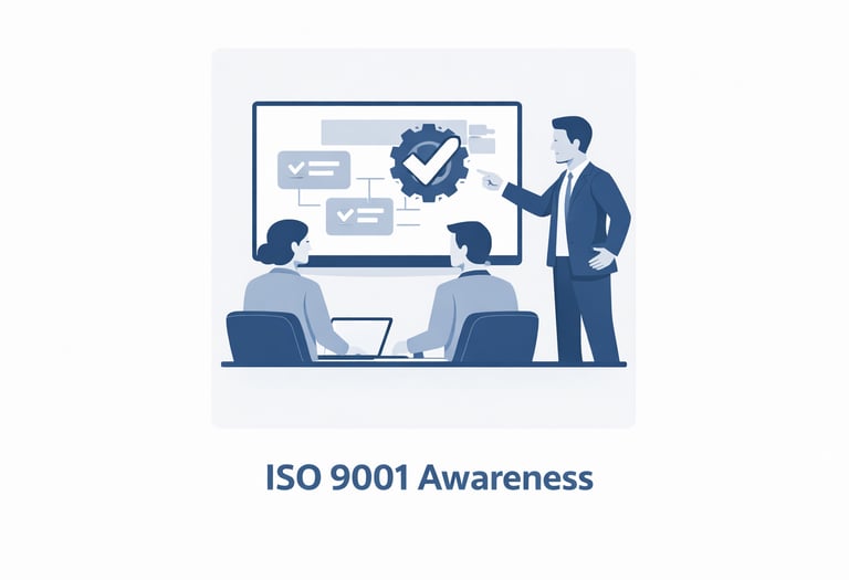 A concise introduction to ISO 9001 and quality management systems. Employees learn the basic principles of quality, their role in the system, and how audits affect daily work.